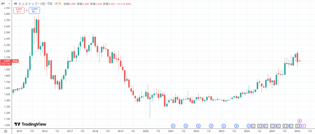 ミニストップの月足チャート(2015~) 引用元:Trading view